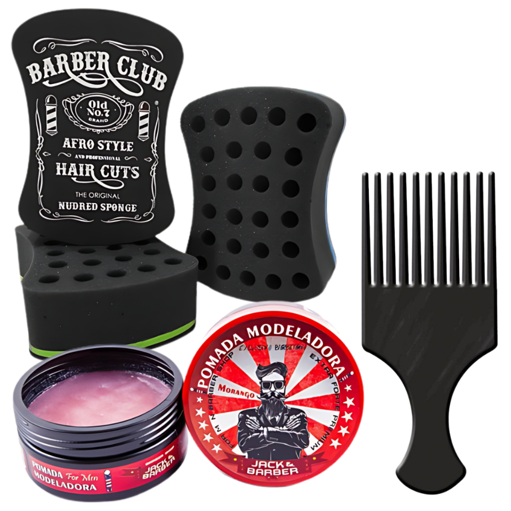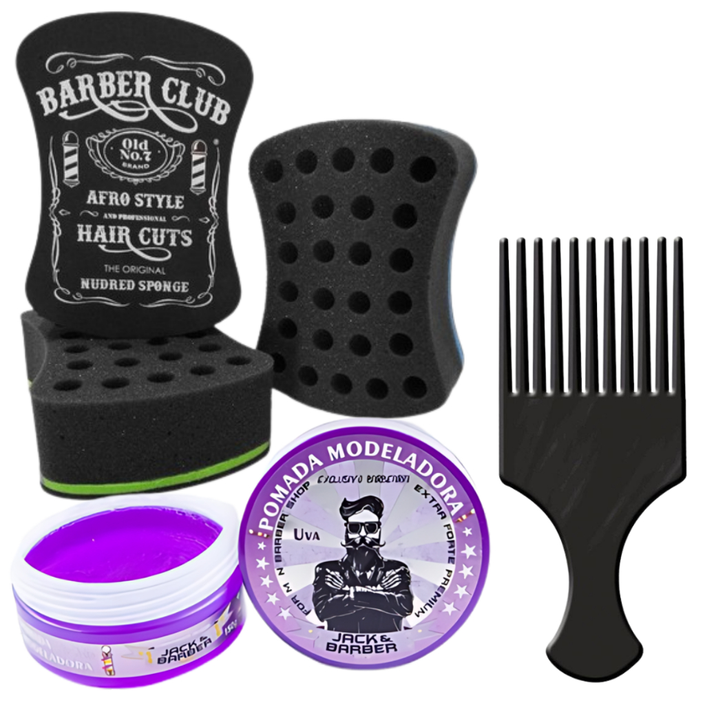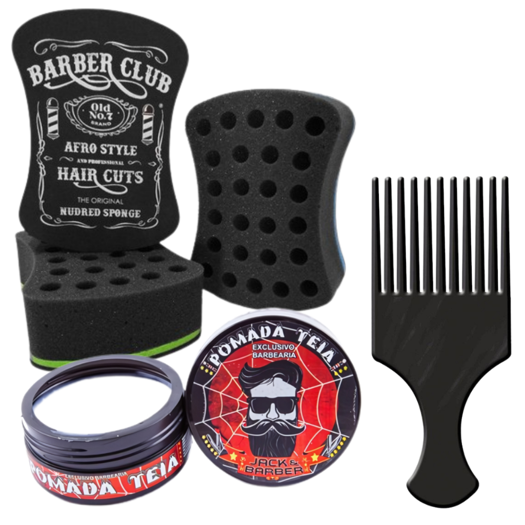 kit nudread bucha de enrola cabelo + pente garfo plastico + cera modeladora jack barber