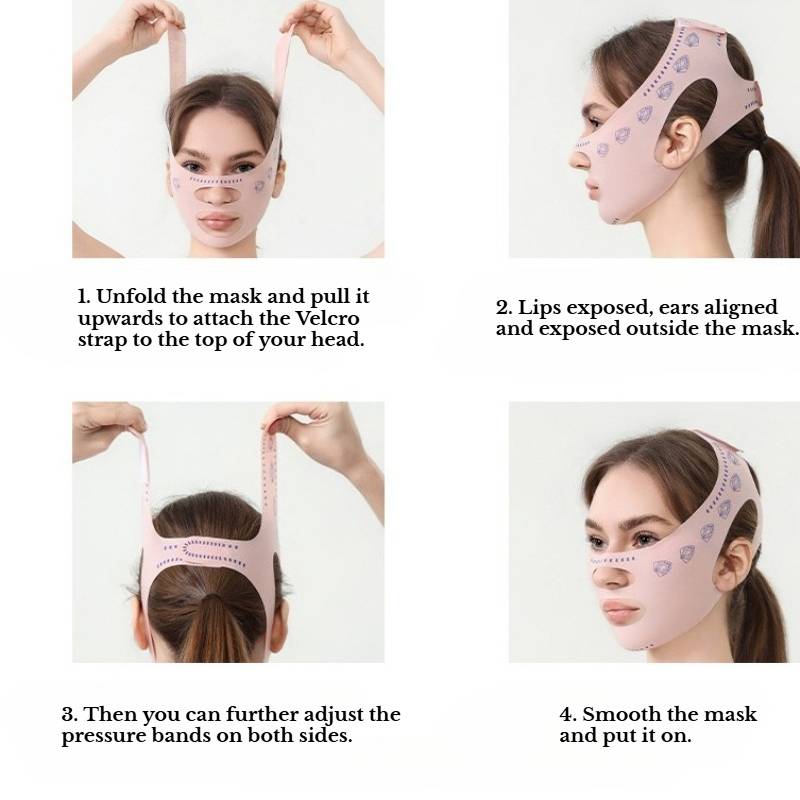 1. Desdobre a máscara e puxe-a para cima para cima para prender a alça de Velcro na parte superior da cabeça.