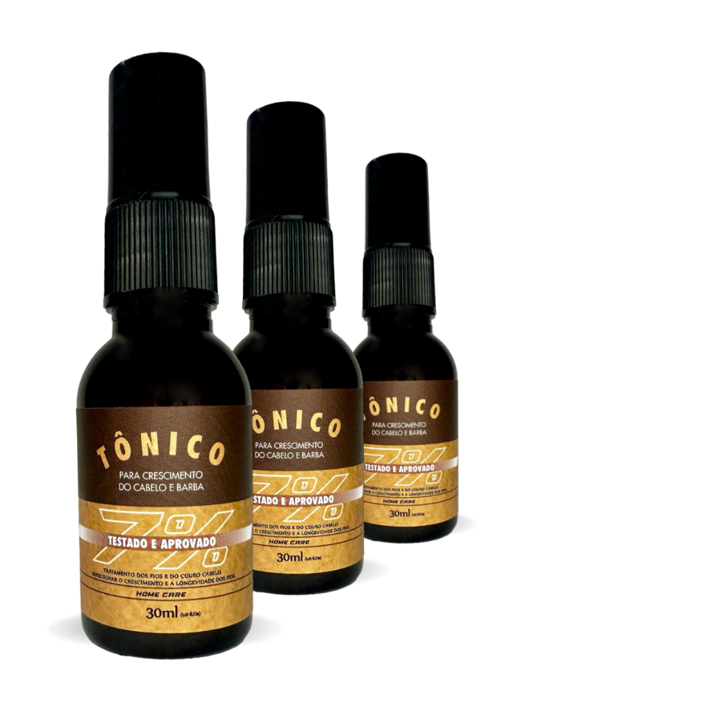 Nosso Tônico Premium foi desenvolvido para auxiliar no cuidado diário com cabelo e barba. Sua fórmula atua diretamente no couro cabeludo e na pele do rosto, ajudando a fortalecer os fios e a melhorar a sensação de densidade. O uso regular pode contribuir para fios mais saudáveis, resistentes e com aspecto uniforme.